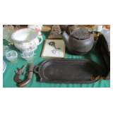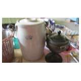 Antiques & Collectibles Auction Wednesday July 10 @ 9:30 am Preview Tuesday 10-7pm Furniture: Really Nice Tiffany Style Lamps; Grandfather Clocks; Desks; Hutch; Buffett; Dressers; Beds; Tables & Chairs; Rugs; Lamps; Art; Rocking Chair; Teak Furniture; Ornate Mirrors; Misc. Tables & Chairs; and so much More! NO BUYER'S PREMIUM Glass and Collectibles: Irish Belleek; Wedgwood; Lenox; Royal Doulton; Cut Glass; Limoges; Large Oriental Vases; Punch Bowl set; Depression glass; Hummels; Hatpin Holder; Nice Oriental Chargers; Gold Rimmed Glassware; Art Glass; Perfume Bottles; Nice Marble Base Desk Set; Pressed Glass; Noritake; Oriental Items; Ginger Jars; Gone with the Wind Lamps; Stemware; Cookie Jar; Thunder Mug; Opalescent Hobnail Sugar & Creamer; Dessert Set; Flow Blue Dishes; Green Glass Bowl; Mary Gregory Glass; Lots of China Dresser Trays; Cheese Keeper; All Sorts of Vases; Ruby Red Glass; Showcases of Jewelry and Plenty More! Pickling Crocks; Crockery Jugs; Flatware; Iron Statues; Dolls; Cast Iron Cookware; Cast Iron Teapot; Huge Copper Stock Pot; Copper Bucket; Coffee Grinder; Wooden Rolling Pins; Globe; Steins; Busts; Buddha; Brass candlesticks; Glass Churn & More Heated Facility
