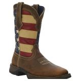 Durango Women's Patriotic Western Boot size: 10 Medium width Full-grain leather upper Flag-design contoured shaft Pull-on straps Decorative stitching on foot Removable, ventilated cushioned insole Tempered steel shank Dual-density translucent rubber outsole with flag graphics Approx. 1-1/4" rebel heel NEW! In retail box. Retails for $161.99 <91> |