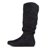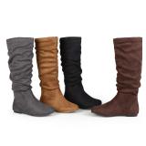 Journee Collection Women's Rebecca Boot - Wide Calfsize: 7.5 Add timeless pieces to your style this year in flat boots by Journee Collection. These wide calf boots feature premium imitation suede uppers in a wide-calf design that rises to the mid-calf and highlights subtle top-stitching. Classic round toes and textured flat outsoles complete the look of these versatile fall boots. A slight slouchy style on the shafts creates a modern look that pairs perfectly with your favorite tights and leggings or skinny pants and skirts. Soft fabric lining keep the feet warm and dry and a pull-on style finish the design of these must-have wide-calf flat boots NEW! In retail box. Retails for $42.99 |
