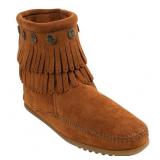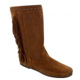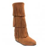 Minnetonka Women’s 3-Tiered Fringed Boot size: 7 Medium width Suede upper with 3-tiered fringes Leather lining Rubber outsole Approx. 12" boot height 13-1/2" calf circumference NEW! In retail box. Retails for $97.99 |