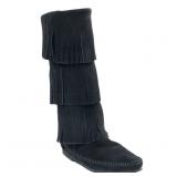 Minnetonka Women’s 3-Tiered Fringed Boot size: 12 Medium width Suede upper with 3-tiered fringes Leather lining Rubber outsole Approx. 12" boot height 13-1/2" calf circumference NEW! In retail box. Retails for $97.99 |