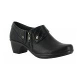 Easy Street Origin Comfort Clog - Wide size: 10 Easy Street Origin closed back clog has man made upper with stretch elastic at instep. Brushed tricot lining. Cushioned microsuede insole. Lightweight and flexible PU unit bottom with approx 1 1/2 inch heel. Man made materials. Made in China. NEW! In retail box. Retails for $49.99 |