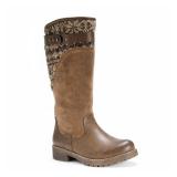 Muk Luks Women's Shawna Sweater Boot size: 9 Medium width Acrylic upper Polyester fleece lining Rubber (TPR) tread outsole Back toggle details NEW! In retail box. Retails for $75.99 |