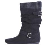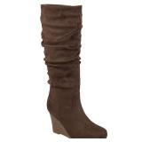 Journee Collection Women's Haze Wide-Calf Slouch Boot size: 9 Medium width Wide calf Synthetic suede-look upper Fabric lining Synthetic outsole Approx. 3-1/4 wedge heel 15" boot height 17" calf circumference Side zipper closure NEW! In retail box. Retails for $84.99 |