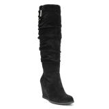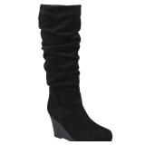 Journee Collection Women's Haze Wide-Calf Slouch Boot size: 6 Medium width Wide calf Synthetic suede-look upper Fabric lining Synthetic outsole Approx. 3-1/4 wedge heel 15" boot height 17" calf circumference Side zipper closure NEW! In retail box. Retails for $84.99 |