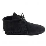 Minnetonka Women's Classic Fringed Bootie size: 10 Medium width Suede upper Softsole outsole Fringed collar 4" boot height Tie closure with rawhide laces NEW! In retail box. Retails for $42.99 |