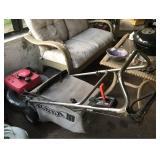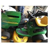 This online auction includes vintage items such as stemware, oil lamp, and banks, art such as vintage still life, Spanish prints, and modern wall art, furniture such as brown leather couch, wood entertainment console, beach chairs and wood end table, electric fireplace with remote, John Deere riding mower, Task Force pressure washer, appliances such as Wolfgang Puck convection oven, commercial steam table, LG washer and dryer, and Frigidaire fridge, workshop tools such as bench grinder, shop vac, and electric pole saw, pottery kiln, and much more!
