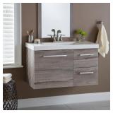 Domani Larissa in 36.50 in. W Wall Hung Vanity in White Washed Oak with Cultured Marble Vanity Top White-Washed Oak finish with built-in rectangular sink Cultured marble vanity top for added strength and beauty Flat panel soft-close door and two drawers for added storage IN RETAIL PACKAGE RETAIL:$363.94 <71> |