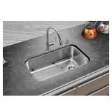 Glacier Bay All-in-One Drop-in Stainless Steel 33 in. 4-Hole Single Bowl Kitchen Sink 18-gauge brushed stainless steel construction Instructions included for easy installation Kitchen faucet included APPEARS NEW IN ORIGINAL RETAIL BOX RETAIL $229.55 <47> |