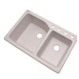 Glacier Bay Grande Dual Mount Composite Granite 35 in. 4-Hole Double Bowl Kitchen Sink in White Outer dimensions: 34-1/4 in. L x 22 in. W x 10 in. D Dual mount design offers installation versatility IN ORIGINAL RETAIL BOX RETAIL $209.66 <49> |