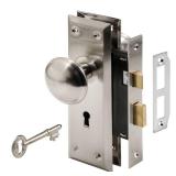 Prime-Line Mortise Lock Set with Keyed Nickel Plated Knobs This mortise lock set is constructed from steel. It features nickel-plated steel trim plates and a hardened steel case. This type of lock uses a bolt that is key activated from both inside and outside. Steel construction Nickel plated steel trim plates Hardened steel caste Uses a bolt that is key activated from both inside and outside NEW IN ORIGINAL RETAIL PACKAGE RETAIL $26.88 |