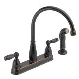 Delta Foundations 2-Handle Standard Kitchen Faucet with Side Sprayer in Oil-Rubbed Bronze 4-hole installation Side sprayer conveniently included IN ORIGINAL RETAIL BOX RETAIL $128.55 |