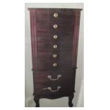 Jewelry Armoire. Lift top with tray and side doors. Out of box. Missing one drawer. See at preview. |