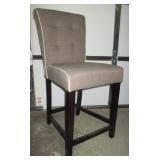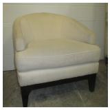 Upholstered Barrel Chair. Out of packaging. Upholstery is a little dirty, but cleanable. Arm has a small rip in it. See at preview. |