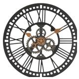 First Time® 24" Oversized Roman Gear Wall Clock. Bring industrial appeal to your home with the First Time® Roman Gear wall clock. The open Roman numerals effortlessly coordinate with decor, while the oil rubbed bronze finish and gear hands make this a timeless addition to any room. 24" Diameter Quartz Movement Battery powered Roman Numeral In factory packaging. Loose hands. See at preview. Original Retail price $110.00 |