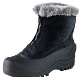 Cougar Women's Canuck Waterproof Boot - Black - Size 8. Medium width. Nylon upper. Polar plush lining. TPR outsole. Removable insole with memory foam. Fleece collar. Slip-resistant bottom. Temp rated to -22F. Waterproof. 13-1/4" calf width. 14-1/4"H. Pull-on with decorative laces to tighten This item is NEW!! In retail shoe box. Retail Price: $164.99 |