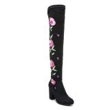 Carlos by Carlos Santana Women's Quality Over-the-Knee Boot - Black - Size 9. Medium width. Fabric upper. Synthetic outsole. 3-1/4" block heel. Approx. 14" calf circumference. Zipper closure. Embroidered shaft This item is NEW!! In retail shoe box. Retail Price: $120.99 |