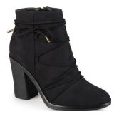 Journee Collection Women’s Effie Bootie - Black - Size 8-1/2. Medium width. Synthetic suede-look upper. Synthetic outsole. Zipper closure. Approx. 3-5/8" chunky heel. Lacing detail with tie This item is NEW!! In retail shoe box. Retail Price: $92.99 |