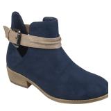 Journee Collection Women's Mavrik Ankle Boot - Blue - Size 10. Medium width. Synthetic suede-look upper. Synthetic outsole. Approx. 1-1/2" block heel. Approx. 5-1/3" boot height. Wrap-around buckle straps. Cutout details This item is NEW!! In retail shoe box. Retail Price: $74.99 |