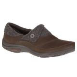 Merrell Women’s Dassie Fold Slip-On Shoe - Size 8. Medium width. Leather/textile upper. Breathable mesh lining with Fresh odor control. Rubber traction outsole. Contoured EVA footbed. Shock-absorbing air-cushioned heel. Molded nylon arch shank This item is NEW!! In retail shoe box. Color unknown. May be different colored.