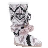 Muk Luks Women's Grace Slipper Boot - Size 10. Medium width. Acrylic knit upper. Polyester fleece lining. Rubber (TPR) indoor/outdoor outsole. Tie detail with pom-poms This item is NEW!! In factory plastic.