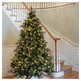 National Tree 7.5 Foot Carolina Pine Tree with Flocked Cones and 750 Clear Lights, Hinged (CAP3-306-75) Measures 7.5 ft. tall with 59" diameter. Pre-strung with 750 UL listed clear lights. Flocked pinecones. 1393 branch tips. All metal hinged construction (branches are attached to center pole sections). This is an aftermarket of generic part. Item is in original retail package. Assembly required. NEW! Retails for $246.89 <26> |