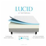 LUCID 10 Inch Gel Memory Foam Mattress - Dual-Layered - CertiPUR-US Certified - Queen Dual-layer mattress combines 2.5" gel-infused, ventilated memory foam surface + 7.5" high density foam base for excellent support with a medium-firm feel. Gel infused memory foam regulates temperature while conforming to the body to ease pressure points. Foam is CertiPUR-US certified for safety and performance.Item is in sealed, compressed and rolled in plastic in original box. NEW! List Price: $239.99 |