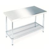 Seville Classics Commercial NSF Stainless Steel Top Worktable 49 x 24 inches 100% Steel. Imported. Brushed 443 stainless steel top with bullnose edge (24" x 49" x 1.5" thick). Load capacity per shelf is 500 lbs.; 1000 lbs. total. Industrial-strength steel frame in chrome with padded, adjustable leveling feet. Item is in original retail package. Assembly required. NEW! Retails for $149.99 |