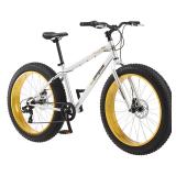 Mongoose Dolomite 26” Men’s Fat Tire Bike Steel fat tire frame. Dual disc brakes provide all-condition braking. Supersized 26" x 4" all terrain knobby tires. 7 speed twist shifter with Shimano 7 speed rear derailleur. 26 inch alloy Super wide rims with front and rear disc brakes. Thread less headset and 3 piece alloy rims. Item is in original retail package. Assembly required. NEW! Retails for $299.99 <38> |