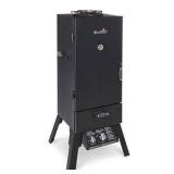 Char-Broil Vertical Liquid Propane Gas Smoker Dimensions: 19.5 x 21.5 x 45.5 inches. 19.95 lbs. 595 square inch cooking surface with 3 chrome-plated cooking grates. 7,566 cubic inches of cooking space. Warming rack on top of smoker chamber. Gas feature allows consistent heat for better smoke experience. Porcelain wood chip and water pan. Item is in original retail package. Assembly required. NEW! List Price: $159.99 |