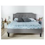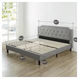 Zinus Upholstered Scalloped Button Tufted Platform Bed with Wooden Slat Support, King Classic Scalloped Headboard styling and strong mattress support. Product dimensions: 80 X 76 X 13 inches; Product weight: 99.7 pounds Smartly packaged in one carton with the frame, legs, and wooden slats conveniently located in the zippered compartment in the back of the headboard for easy assembly. Foam padded tape is added to the steel frame for noise-free use. Item is in original retail package. Assembly required. NEW! Retails for $302.69 |