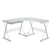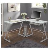 WE Furniture Glass Metal Corner Computer Desk Dimensions: 20 x 51 x 29 inches. 57 lbs. Polished and beveled, tempered safety glass. Durable steel frame with powder-coated finish. Universal, autonomous CPU stand. Sliding keyboard tray can be mounted on either side of desk. Space-saving L-shape design. All glass is 6 mm thick. Ships ready-to-assemble. Item is in original retail package. Assembly required. NEW! List Price: $199.00 |