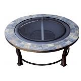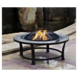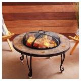 Hiland AZ Patio Heaters Fire Pit with Round Table, Wood Burning Dimensions: 40 x 21 x 40 inches. 51 lbs. Add warmth and ambience to your patio, deck, or backyard with this round wood burning fire pit. This fire pit is made of sturdy steel with a antique black finish. It features a round shape and slate fire table to complement any style and is easily portable. Its deep bowl makes this fire pit ideal for burning larger fires and even roasting marshmallows! It comes complete with an easy to lift mesh spark guard, wood grate. Item is in original retail package. Assembly required. NEW! List Price: $159.00 |