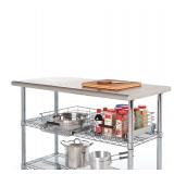 Seville Classics Stainless Steel Kitchen Utility Table Dimensions: 49 in. D x 24 in. W x 35 in. H. NSF certified. Brushed 443 stainless steel top work surface. Heavy-duty 1.5 in. Dia chrome-plated steel legs with leveling feet included. Work table surface has curved edge for added safety. Item is in original OPEN retail package. Assembly required. NEW! Retails for $139.99 |