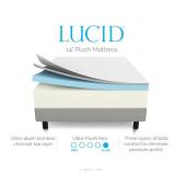 LUCID 14 Inch Plush Memory Foam Mattress - Ventilated Gel Memory Foam + Bamboo Charcoal Infused Memory Foam - CertiPUR-US Certified - King Dual memory foam layers on top of a supportive base create a plush feel. 1-inch bamboo charcoal memory foam layer is quilted into a soft Tencel blend cover. Plush, gel-infused memory foam hugs curves to relieve pressure, with ventilated design for better airflow and temperature. Item is in sealed, compressed and rolled in plastic in original packaging. NEW! List Price: $749.99 |