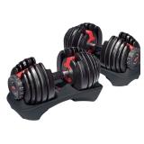 Bowflex SelectTech 552 Adjustable Dumbbells (Pair). Each dumbbell adjusts from 5 to 52.5 pounds; adjusts in 2.5-pound increments up to the first 25 pounds Lets you rapidly switch from one exercise to the next Combines 15 sets of weights into one, using a unique dial system Eliminates the need for multiple dumbbells cluttering your workout space. In factory packaging. This item is New! Retails for $249.98. |
