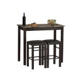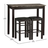 Linon Tavern Collection 3-Piece Table Set Attractive 3-piece table set from Linon's Tavern collection; set includes rectangular table and 2 stools. Hardwood construction with espresso finish; faux stone paper-wrapped table top. Padded stool seats with black vinyl upholstery; stools tuck under table for storage. Requires home assembly; assembled table measures 42 inches wide by 22-1/4 inches deep by 36 inches high. Space saving design and convenience. Item is in original retail package. Assembly required. NEW! List Price: $157.00 |
