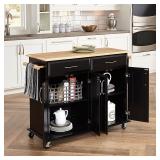 Home Styles 4528-95 Dolly Madison Kitchen Cart, Black Finish Made of sustainable hardwood. The cart has two cabinets, each with an adjustable shelf along with two utility drawers and two towel bars. Heavy duty locking casters ensure convenient mobility. Measures 48-1/4-inch width by 18-1/2-inch depth by 35-1/2-inch height. Item is in original retail package. Assembly required. NEW! Retails for $269.99 |