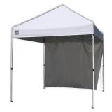 Quik Shade Commercial C100 10'x10' Instant Canopy with Wall Panel - White 10 ft. x 10 ft. fully assembled straight leg instant canopy provides 100 sq. ft. of shade for 8-12 people. Sturdy, lightweight construction with a corrosion resistant powder-coated steel, one-piece frame for long-lasting durability. 10 ft. x 10 ft. canopy top made with 300D polyester fabric with Aluminex-backed top ensures 99% UV protection, water resistance, and cooler shade area. Extra large push/pull latch sliders and leg extenders offer 3 height adjustments and allow for peak height of 10 ft. and eave clearance of 6 ft. 5 in. Item is in original retail package. Assembly required. NEW! List Price: $175.99 |