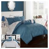 Chic Home Maddie Midweight Bedding. Hand Pleated techniquw stitching detail that reverses to a printed ikat contemporary pattern. Queen. New in Factory Packaging. Retail $360.00. (58) |