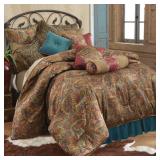 HiEnd Accents San Angelo Bedding. The HiEnd Accents San Angelo collection mixes paisley print with fun pops of leopard chenille, red faux leather and teal velvet for a designer collection with western flair. Queen. New in Factory Packaging. Retail $335.00. |