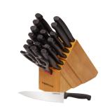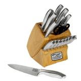 Chicago Cutlery 18-Piece Insignia Steel Knife Set with Block and In-Block Sharpener. Just as an insignia is the mark of military rank, Insignia Steel cutting tools are the mark of a pro. This 18-piece Chicago Cutlery knife set has the knives that professionals rely on for accurate, efficient food prep. And, with a satin finish, the knives are pleasing to both the eye and the hand. This set makes a great gift, one that will be used regularly - not relegated to the back of the pantry. 18-piece set includes 3" peeler, 3-1/4" parer, 6" boning, 5" utility, 8" serrated bread, 7" Santoku, 8" slicer, 8" chef, shears, eight 4-1/2" steak knives, block with in-block sharpener. New in Factory Box. Retail $176.00. |