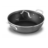 Calphalon 1932442 Classic Nonstick All Purpose Pan with Cover, 12-Inch, Grey. Designed for reliable everyday cooking, the Calphalon Classic Nonstick 12-inch All Purpose Pan with Cover is constructed from durable hard-anodized aluminum for fast and even heating, with a dual-layer nonstick interior for easy food release and cleanup. This pan features a versatile shape and size, so you can use it to fry, sauté, stir-fry, and more. The Calphalon Classic Nonstick 12-inch All Purpose Pan with Cover is oven safe up to 450 degrees Fahrenheit. New in Factory Box. Retail $74.00. |