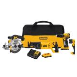 DeWalt 20V MAX Lithium-Ion 4-Pc. Cordless Tool Kit with 2 Batteries - DCK423D2. This DeWalt combo kit is ideal for most cutting and drilling applications. It includes a 1/2" drill/driver, reciprocating saw, 7-1/4'' circular saw; LED work light, two 20V rechargeable lithium-ion batteries, charger and contractor bag. This item is NEW! In factory box. Retail Price: $549.99 (RT43) |