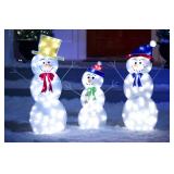 alcove 3-pc. Holographic Snowman set. Small snowman: 27"H. Medium snowman: 35"H. Large snowman: 38"H. This item is NEW! In factory box. Retail Price: $87.99 |