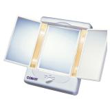 Conair Double-Sided Lighted Makeup Mirror. Center panel swivels from 1x to 5x magnification, plus 2 side panels for wide-angle viewing. 4 color-balanced light settings. This item is NEW! In factory box. Retail Price: $54.99 |