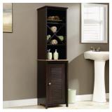 Sauder Bath Peppercorn Collection Linen Tower. Linen tower with open shelving and louver details. Faux granite shelf and engineered wood body Cinnamon cherry finish. This item is NEW! In factory box. Retail Price: $112.71 |