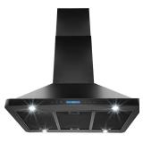 AKDY 36 in. Kitchen Island Mount Range Hood in Stainless Steel Black Finish with Remote and Dual Side Touch Control Range Hood Size: 36 in. Dimension: 35.5 in. W x 23.75 in. L x 49.5 in. H Minimum Drop Down Height: 29.75 in. Duct Size: 6.25 in. Flapper: Yes Airflow: 500 CFM Level of Speed: 3 Control Type: Dual Touch Panel Noise Level: Less than 70dB at 500 CFM Lighting: 4 x 1.5-Watt LED Motor Wattage: 204-Watt Product Finish: Black Stainless Steel Voltage: 120-Volt/60Hz Filter Type: 3 x Aluminum Mesh Filter In retail package. Retails for $399.99 <53> |