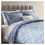 Home Decorators Collection Dandridge Indigio Queen Duvet Blends relaxing hues of blue and patterned paisley damask Easily insert your comforter with bottom button closures 100% cotton, 200 thread-count and conveniently machine washable In retail package. Retails for $119.00 <20> |