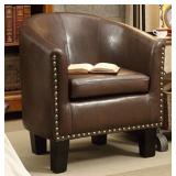 Millbury Home Isabela Arm Club Chair, PU Leather Barrel Modern Chair, Espresso.Barrel shape design for easy space or corner spot. Removable wooden legs and seat cushion. PU leather for easy clean and maintenance . APPEARS to be new in retail packaging. Please attend the Preview to see the item for yourself. Retail $172.50